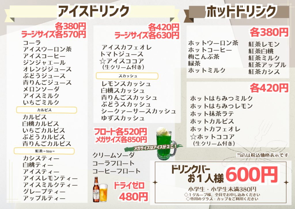 ※このメニューは2025年10月1日現在のものです。内容・金額等変更になる場合がございます。