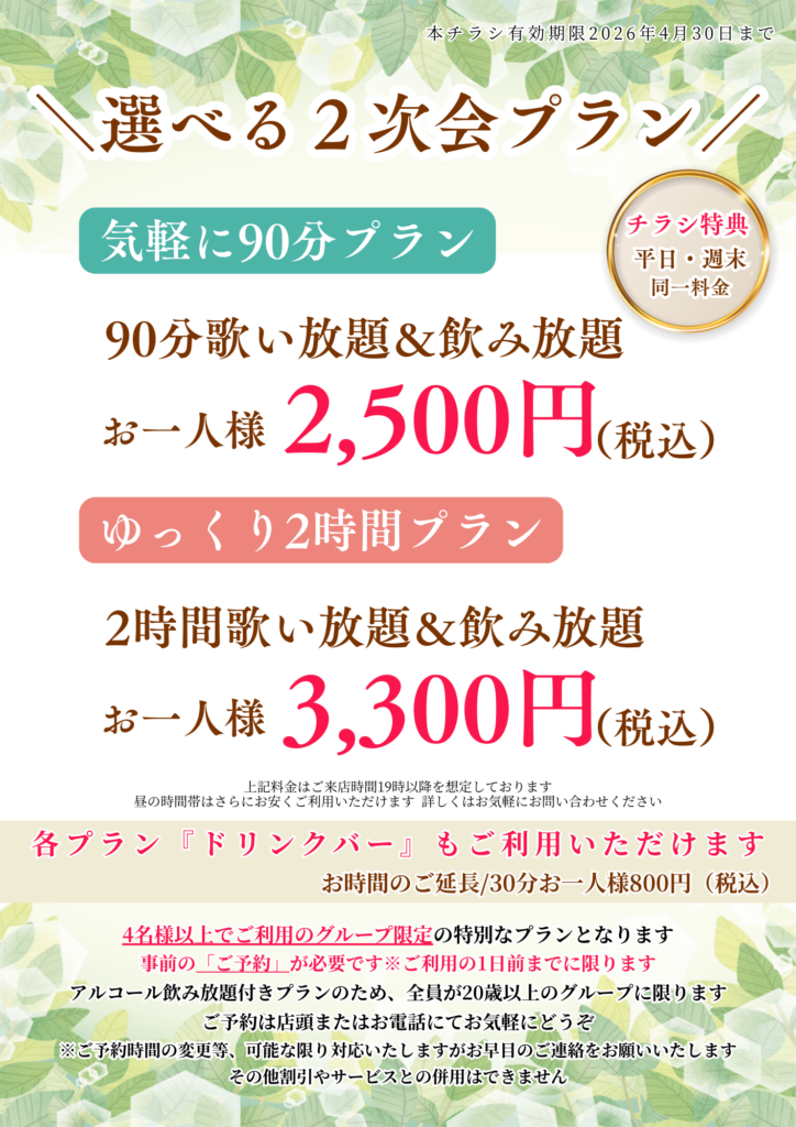 ご予約の際は「歓送迎会プランで」とお申し付けください。