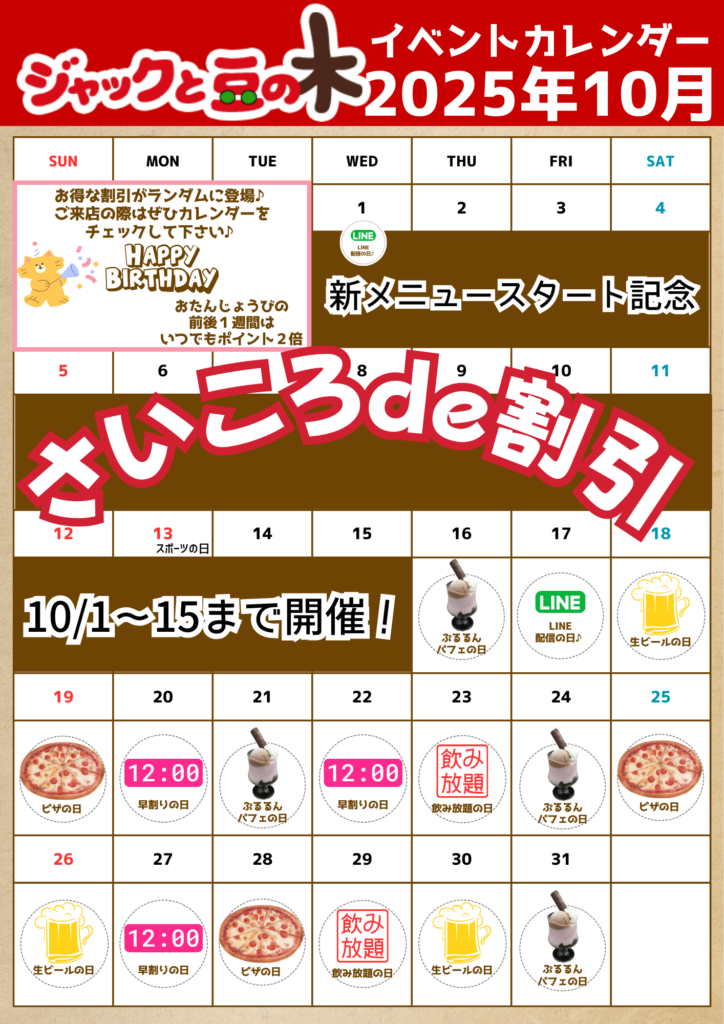 10月から新メニューがスタート!記念イベント【サイコロde割引】を開催いたします。お楽しみに!