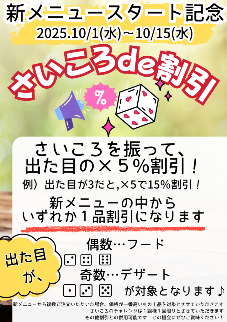 チャレンジは1組様1回まで!ご注文の有無にかかわらず受付時にチャレンジをお願いしています。お気軽にご参加ください!